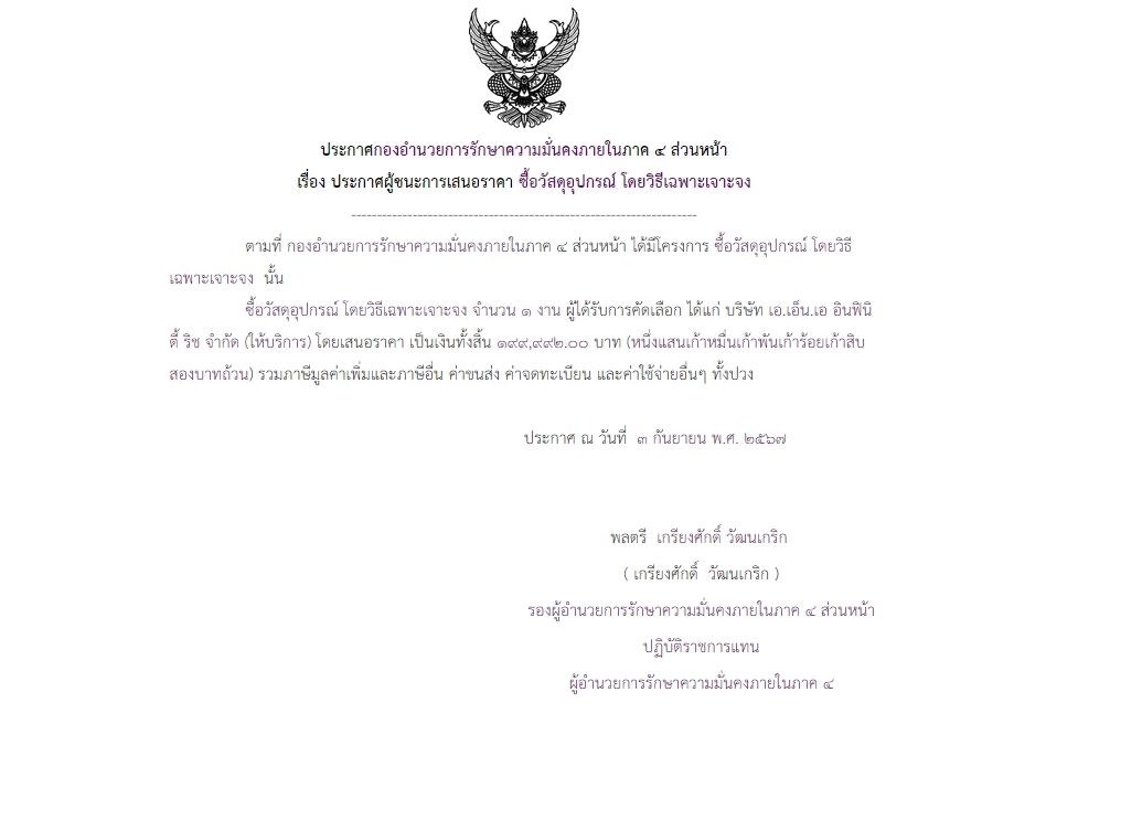 จัดซื้อ จัดจ้างประกาศผู้ชนะการเสนอราคา ประกาศผู้ชนะการเสนอราคา ซื้อวัสดุอุปกรณ์ โดยวิธีเฉพาะเจาะจง September 11, 2024 389 Share Facebook Twitter Google+ Telegram LINE