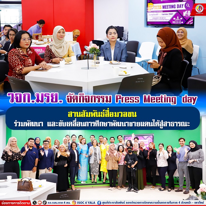 วันที่ 12 กันยายน 2567 ณ ห้องปฏิบัติการ YRU BIZ ชั้น 5 อาคารคณะวิทยาการจัดการ มหาวิทยาลัยราชภัฏยะลา ผศ.ดร.สุกฤษตา รักสุจริต คณบดีคณะวิทยาการจัดการ พร้อมด้วยผู้บริหาร คณะวิทยาการจัดการ มหาวิทยาลัยราชภัฏยะลา จัดกิจกรรม Press Meeting day สานสัมพันธ์สื่อมวลชน เพื่อสร้างสัมพันธ์ที่ดีระหว่างคณะวิทยาการจัดการ และสื่อมวลชนในพื้นที่ ได้มาพบปะพูดคุยแลกเปลี่ยนข้อมูลข่าวสารระหว่างคณะวิทยาการจัดการ มหาวิทยาลัยราชภัฏยะลา รวมถึงได้แลกเปลี่ยนแนวทางการประชาสัมพันธ์เรื่องการส่งเสริมด้านการศึกษา โดยเฉพาะเรื่องการประชาสัมพันธ์ผลการดำเนินงานด้านการศึกษาออกสู่สาธารณะ เพื่อให้เยาวชนคนรุ่นใหม่ได้รับรู้ถึงความสำคัญของการศึกษา และหันมาสนใจเรื่องการศึกษาในระบบมหาวิทยาลัยมากยิ่งขึ้น ซึ่งต้องอาศัยความร่วมมือจากสื่อมวลชน และภาคีเครือข่ายที่เกี่ยวข้องร่วมกันผลักดันสนับสนุนส่งเสริมเรื่องการศึกษาในพื้นที่ โดยมีสื่อมวลชน และเครือข่ายที่เกี่ยวข้องร่วมพบปะ