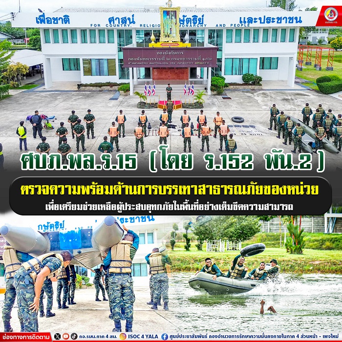 เมื่อวันที่ 12 กันยายน 2567 เวลา 14.30 น. ณ กองบังคับการ กองพันทหารราบที่ 2 กรมทหารราบที่ 152 ค่ายพระยาเดชานุชิต ตำบลวังพญา อำเภอรามัน จังหวัดยะลา พันโท สว่างพงษ์ อบแพทย์ ผู้บังคับกองพันทหารราบที่ 2 กรมทหารราบที่ 152 มอบหมายให้ ฝ่ายกิจการพลเรือนฯ นำกำลังพล กองร้อยบรรเทาสาธารณภัย กองพันทหารราบที่ 2 กรมทหารราบที่ 152 ร่วมกับ หน่วยกู้ชีพ ตำบลวังพญา ตรวจสภาพความพร้อมของกองร้อยบรรเทาสาธารณภัย เพื่อเตรียมความพร้อม ด้านกำลังพล ยุทโธปกรณ์ และยานพาหนะของหน่วย ในการให้ความช่วยเหลือพี่น้องประชาชนด้านอุทกภัยในพื้นที่รับผิดชอบ ได้อย่างเต็มขีดความสามารถ และทันท่วงที
