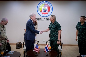 ทั้งนี้ แม่ทัพภาคที่ 4 ได้กล่าวขอบคุณความสัมพันธ์อย่างยาวนานของทั้ง 2 ประเทศ สำหรับข้อมูลเกี่ยวกับสถานการณ์ในพื้นที่จังหวัดชายแดนภาคใต้ที่เกิดขึ้นตั้งแต่ ปี 2547 นั้น นับเป็นเวลา 20 ปี ซึ่งปัจจุบันสถานการณ์ดีขึ้น เหตุการณ์ลดลง สูญเสียน้อยลง ก็เกิดจากรัฐบาลไทยได้ช่วยกัน ทั้งด้านการเมือง การข่าว ยุทธการ ดีขึ้นเป็นลำดับ รัฐบาลไทยได้ให้ความสำคัญของปัญหาจังหวัดชายแดนภาคใต้ ที่เป็นสังคมพหุวัฒนธรรม โดยพยายามดึงสันติสุขให้กลับมา คนที่นี่ต้องการสันติสุข ความรุนแรงที่เกิดขึ้นมีเพียงบางกลุ่มเท่านั้น ต้องขอขอบคุณทางสหรัฐฯ ที่คอยช่วยเหลือและเป็นกำลังใจให้เจ้าหน้าที่ของรัฐบาลไทย และสิ่งที่จะเดินหน้าต่อคือการพูดคุยเพื่อสันติสุข ใช้การพูดคุยมากกว่าการใช้กำลัง รวมถึงการส่งเสริมเศรษฐกิจ การท่องเที่ยว และขับเคลื่อนโครงการต่าง ๆ ที่จะเข้ามาเพื่อประโยชน์ในภาพรวม โดยคำนึงถึงประชาชนในพื้นที่เป็นหลัก