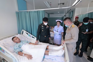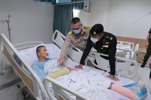 โอกาสนี้ แม่ทัพภาคที่ 4 / ผู้อำนวยการรักษาความมั่นคงภายในภาค 4 ได้สอบถามอาการ และเหตุการณ์ที่เกิดขึ้น พร้อมทั้งนำความห่วงใยจากผู้บังคับบัญชามายังกำลังพลเจ้าหน้าที่ และครอบครัว พร้อมได้มอบกระเช้าเยี่ยม และเงินช่วยเหลือเยียวยาเบื้องต้นให้กับกำลังพลอีกด้วย โดยได้เน้นย้ำเรื่องสวัสดิการ ด้านการรักษาพยาบาลอย่างดีที่สุด ส่วนการบังคับใช้กฎหมายนั้น ขณะนี้เจ้าหน้าที่ทุกฝ่ายเร่งสืบสวนรวบรวมพยานหลักฐาน เพื่อติดตามตัวผู้ก่อเหตุมาดำเนินคดีตามกฎหมายต่อไป และได้เน้นย้ำกำชับไปยังเจ้าหน้าที่ทุกนายถึงการปฏิบัติงาน ให้เพิ่มความระมัดระวัง และทุกภารกิจให้มีความพร้อมตื่นตัวอยู่เสมอ เพราะเหตุการณ์ไม่คาดคิดอาจเกิดขึ้นได้ตลอดเวลา ต้องไม่ประมาทให้เตรียมพร้อมรับมือทุสถานการณ์ เพื่อป้องกัน และลดการสูญเสียทุกรูปแบบ