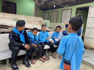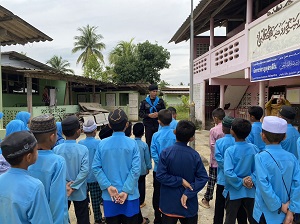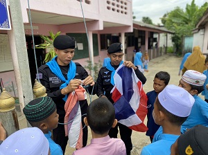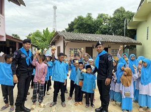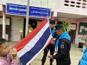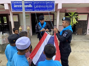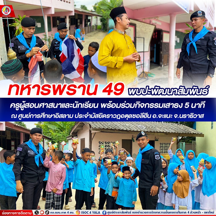เมื่อ 21 กันยายน 2567 เวลา 08.00 น. พันเอก ภาณุวัฒน์ สุคชเดช ผู้บังคับหน่วยเฉพาะกิจกรมทหารพรานที่ 49 มอบหมายให้ กองร้อยทหารพรานที่ 4914 นำโดย จ่าสิบเอก ปริวัฒน์ ชูโต รองหัวหน้าชุดปฎิบัติการกิจการพลเรือน พร้อมด้วย กำลังพลชุดปฏิบัติการกิจการพลเรือน เข้าพบปะ พูดคุย พัฒนาสัมพันธ์ครูผู้สอนศาสนาและนักเรียนในตาดีกา และร่วมกิจกรรมเสาธง 5 นาที ได้ให้ความรู้กับนักเรียนเกี่ยวกับโทษของยาเสพติด และปลูกฝังอุดมการณ์รักชาติ พร้อมมอบขนมเพื่อเป็นกำลังใจในการศึกษาของนักเรียน บริเวณ ณ ศูนย์การศึกษาอิสลามประจำมัสยิดราวฎอตุลซอลีฮีน บ้านจะแนะ หมู่ที่ 2 ตำบลจะแนะ อำเภอจะแนะ จังหวัดนราธิวาส