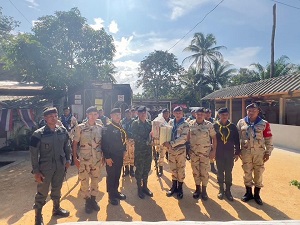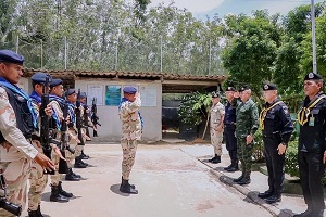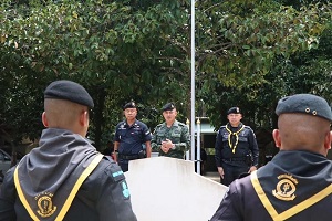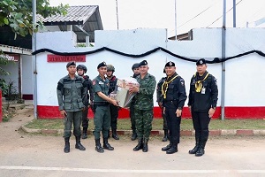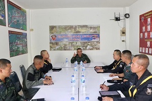 เมื่อวันที่ 23 กันยายน 2567 เวลา 09.30 น. พันเอก สุรศักดิ์ พึ่งแย้ม ผู้บังคับหน่วยเฉพาะกิจกรมทหารพรานที่ 45 พร้อมด้วย ผู้กำกับการสถานีตำรวจภูธรระแงะ ฝ่ายอำนวยการ และผู้บังคับกองร้อยหน่วยขึ้นตรง ร่วมให้การต้อนรับ พันเอก จักรกฤษณ์ รัตนะ รองผู้บังคับหน่วยเฉพาะกิจนราธิวาส ในโอกาสเดินทางลงพื้นที่ตรวจเยี่ยมให้กำลังใจ และติดตามการปฏิบัติงาน ได้แก่ กองร้อยทหารพรานที่ 4510 และหน่วยขึ้นควบคุมทางยุทธการ หมวดเฉพาะกิจ หน่วยปฏิบัติการพิเศษนราธิวาส 22 (มว.ฉก.นปพ.นธ.22) , ชุดคุ้มครองตำบลกาลิซา และชุดคุ้มครองตำบลตันหยงมัส โดยได้เน้นย้ำการปฏิบัติงานตามนโยบาย และสั่งการของผู้บังคับบัญชาในห้วงรอยต่อระหว่างปีงบประมาณ ทั้งนี้ได้นำความห่วงใยจากผู้บังคับบัญชาในการดูแลควบคุมพื้นที่ ให้เป็นพื้นที่ปลอดเหตุ ประชาชนปลอดภัย พร้อมได้มอบสิ่งของบริโภค เพื่อเป็นขวัญและกำลังใจให้กับกำลังพลที่ปฏิบัติหน้าที่ในพื้นที่อำเภอระแงะ จังหวัดนราธิวาส