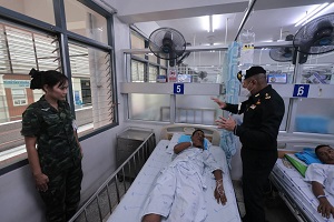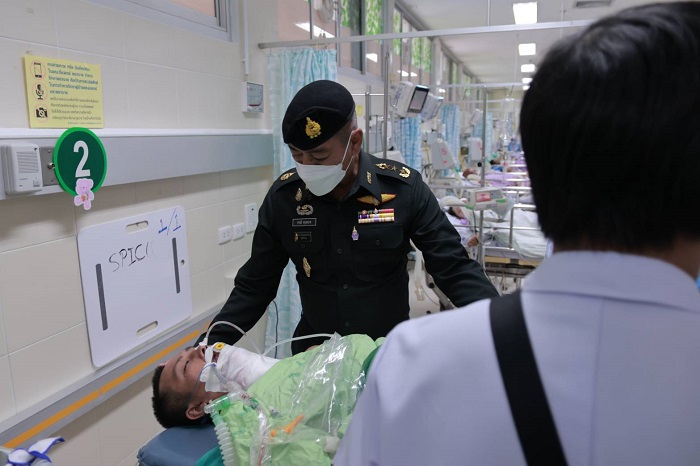 วันนี้ 26 กันยายน 2567 ณ โรงพยาบาลนราธิวาสราชนครินทร์ อำเภอเมือง จังหวัดนราธิวาส พลโท ศานติ ศกุนตนาค แม่ทัพภาคที่ 4 / ผู้อำนวยการรักษาความมั่นคงภายในภาค 4 เข้าเยี่ยมให้กำลังใจเจ้าหน้าที่ทหารพรานที่ได้รับบาดเจ็บจากเหตุคนร้ายลอบวางระเบิดในพื้นที่อำเภอระแงะ จังหวัดนราธิวาส เหตุเกิดขณะเจ้าหน้าที่ชุดปฏิบัติการกองร้อยทหารพรานที่ 4805 หน่วยเฉพาะกิจกรมทหารพรานที่ 48 จัดกำลังพล จำนวน 8 นาย เดินทางด้วยรถยนต์กระบะเพื่อขนไม้ยางนำมาปรับปรุงฐานปฏิบัติการของหน่วย และในระหว่างเดินทางขากลับมาถึงบริเวณสะพานบ้านตะโล๊ะ หมู่ที่ 1 ตำบลตันหยงลิมอ อำเภอระแงะ จังหวัดนราธิวาส คนร้ายได้จุดชนวนระเบิดขึ้น แรงระเบิดทำให้เจ้าหน้าที่ได้รับบาดเจ็บ จำนวน 8 นาย รถยนต์กระบะได้รับความเสียหาย ปัจจุบันได้นำตัวผู้บาดเจ็บส่งเข้ารับการรักษายังโรงพยาบาลนราธิวาสราชนครินทร์ ประกอบด้วย 1.จ่าสิบเอก ทิฆัมพร ฉลาดเเฉลม มีอาการหูอื้อ มีบาดแผล บริเวณลำคอ 2.สิบเอก อภิวัฒน์ ประวัติ มีอาการหูอื้อข้างซ้าย มีอาการเจ็บหน้าอกข้างซ้าย มีบาดแผลบริเวณคางด้านซ้าย 3. อาสาสมัครทหารพราน ศราวุฒิ จามจุรี มีอาการหูอื้อข้างขวา 4. อาสาสมัครทหารพราน สว่าง คัดชู มีอาการหูอื้อข้างซ้าย มีแผลสะเก็ดระเบิดบริเวณขมับข้างซ้าย และใบหูข้างซ้าย ต้นแขนซ้าย มีอาการแน่นหน้าอก 5. อาสาสมัครทหารพราน ธีระยุทธ์ สิงหพันธ์ มีอาการหูอื้อข้างขวา มีบาดแผลสะเก็ดระเบิดบริเวณหลังและแขนข้างขวา และบริเวณใบหน้าข้างขวา อาสาสมัครทหารพราน ภูเมศร์ ทอบุตร มีอาการปวดหูข้างซ้าย มีอาการแน่นหน้าอก ไม่มีบาดแผลตามตัว ปวดเข่าซ้าย 7. อาสาสมัครทหารพราน สุมนต์ สมเจตนา มีอาการหูอื้อ ข้างขวา เจ็บบริเวณท้ายทอย และ 8. อาสาสมัครทหารพราน เทพนิมิตร กลิ่นบุญเเก้ว มีแผลสะเก็ดระเบิดโดนบริเวณคาง 2 แผล บริเวณคอ 1 แผลและหน้าท้องข้างซ้าย 1 แผล มีแผล แขนข้างขวา 2 แผล 1 ปัจจุบันได้ส่งต่อการรักษาไปยังโรงพยาบาลสงขลานครินทร์ อำเภอหาดใหญ่ จังหวัดสงขลา