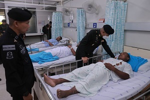 โอกาสนี้ แม่ทัพภาคที่ 4 / ผู้อำนวยการรักษาความมั่นคงภายในภาค 4 ได้เยี่ยมให้กำลังใจสอบถามอาการ และเหตุการณ์ที่เกิดขึ้น พร้อมทั้งนำความห่วงใยจากผู้บังคับบัญชามายังกำลังพลเจ้าหน้าที่ และครอบครัว โดยได้เน้นย้ำเรื่องสวัสดิการ ด้านการรักษาพยาบาลอย่างดีที่สุด ส่วนการบังคับใช้กฎหมายนั้น ขณะนี้เจ้าหน้าที่ทุกฝ่ายเร่งสืบสวนรวบรวมพยานหลักฐาน เพื่อติดตามตัวผู้ก่อเหตุมาดำเนินคดีตามกฎหมายต่อไป และได้เน้นย้ำกำชับไปยังเจ้าหน้าที่ทุกนายถึงการปฏิบัติงานให้เพิ่มความระมัดระวัง เพื่อลดการสูญเสียของกำลังพล และให้มีการปรับเปลี่ยนแผนการรักษาความปลอดภัยรวมถึงแผนการเดินทางในการปฏิบัติภารกิจทุกครั้งเพื่อป้องกันการลักลอบการก่อเหตุ