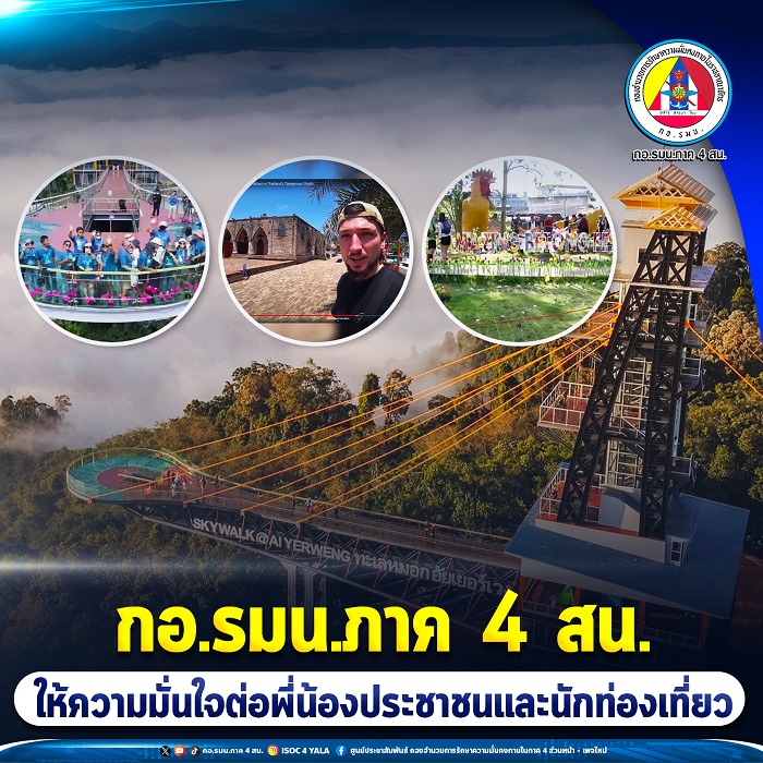 ทั้งนี้ กองอำนวยการรักษาความมั่นคงภายในภาค 4 ส่วนหน้า ขอให้พี่น้องประชาชนทุกภาคส่วนได้มีความมั่นใจในการเดินทางมายังพื้นที่ และขอเชิญชวนนักท่องเที่ยวทั้งในและต่างประเทศ เดินทางมาสัมผัสบรรยากาศความเป็นพหุวัฒนธรรม ซึ่งมีความเป็นเอกลักษณ์เฉพาะในพื้นที่จังหวัดชายแดนภาคใต้เท่านั้น