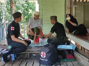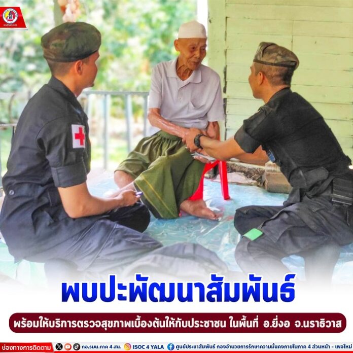 จากปัญหาความเดือดร้อนในด้านการดูแลสุขภาพของประชาชนในพื้นที่จังหวัดชายแดนภาคใต้ ซึ่งบางพื้นที่อยู่ห่างไกลไม่สามารถเข้าถึงบริการทางการแพทย์ ประกอบกับในพื้นที่ส่วนใหญ่มีประชาชนซึ่งเป็นผู้สูงอายุ และผู้พิการเป็นจำนวนมาก รวมทั้งสภาพภูมิอากาศมีฝนตกเป็นประจำ ทำให้ประชาชนเจ็บป่วยได้ง่าย ดังนั้น หน่วยงานด้านความมั่งคงในพื้นที่ จึงได้จัดกิจกรรมหมอเดินเท้า โดยการจัดชุดทีมแพทย์ของหน่วยลงพื้นที่ให้บริการทางการแพทย์แก่ประชาชน แบบเข้าถึงได้ทั่วทุกพื้นที่ และยังส่งผลให้ประชาชนสามารถเข้าถึงการบริการทางการแพทย์ เฉกเช่นเดียวกันกับหน่วยเฉพาะกิจนาวิกโยธินกองทัพเรือ ที่ได้จัดกำลังพล พร้อมเจ้าหน้าที่พยาบาล ลงพื้นที่บ้านบูแม ตำบลยี่งอ อำเภอยี่งอ จังหวัดนราธิวาส เมื่อวันที่ 8 ตุลาคม 2567 เพื่อพบปะเยี่ยมเยียนกับพี่น้องประชาชน พร้อมให้บริการตรวจสุขภาพเบื้องต้น รวมทั้งสอบถามปัญหา และข้อขัดข้องที่ต้องการให้ภาครัฐเข้าช่วยเหลือแบ่งเบาความเดือดร้อน ตลอดจนได้ให้คำแนะนำในการดูแลรักษาสุขภาพในช่วงฤดูฝนอีกด้วย รวมทั้งยังได้มอบยาสามัญประจำบ้าน เพื่อให้ประชาชนไว้ใช้ดูแลรักษาสุขภาพป้องกันการเจ็บป่วยในเบื้องต้น