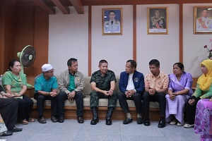 วันนี้ (10 ตุลาคม 2567) ที่ กองอำนวยการรักษาความมั่นคงภายในภาค 4 ส่วนหน้า อำเภอยะรัง จังหวัดปัตตานี พลโท ไพศาล หนูสังข์ แม่ทัพภาคที่ 4 / ผู้อำนวยการรักษาความมั่นคงภายในภาค 4 ให้การต้อนรับ คณะส่วนราชการ หน่วยงานต่าง ๆ ตลอดจนองค์กรภาคประชาชน ประกอบด้วย คณะผู้บริหาร และเจ้าหน้าที่จากศูนย์อำนวยการบริหารจังหวัดชายแดนภาคใต้, ศูนย์อำนวยการจิตอาสาพระราชทาน ภาค 4, สำนักงานทางหลวง 5 จังหวัดชายแดนภาคใต้, สำนักงานทางหลวงเขต 18, สำนักงานประชาสัมพันธ์เขต 6, องค์กรภาคประชาชนเพื่อสันติและเศรษฐกิจพอเพียงจังหวัดชายแดนภาคใต้, กลุ่มสตรีไทยพุทธ-มุสลิม และกลุ่มมวลชนเสื้อเขียว ร่วมแสดงความยินดี และรับฟังนโยบายการขับเคลื่อนงานจังหวัดชายแดนภาคใต้ สู่การพัฒนาพื้นที่ พัฒนาชีวิต และความเป็นอยู่ ควบคู่กับความปลอดภัยในชีวิตและทรัพย์สินของพี่น้องประชาชน 3 จังหวัดและ 4 อำเภอของจังหวัดสงขลา ให้เกิดความมั่นคง มั่งคั่ง และยั่งยืน ต่างขานรับนโยบายและพร้อมจะขับเคลื่อนด้วยการบูรณาการร่วมในทุกมิติจากทุกองค์กร สู่การเดินหน้า “สร้างความเข้าใจ ร่วมใจแก้ปัญหา นำพาสันติสุข”