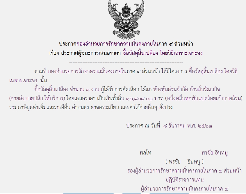 ประกาศผู้ชนะการเสนอราคา ซื้อวัสดุสิ้นเปลือง โดยวิธีเฉพาะเจาะจง ( ๑๖,๘๐๙.๐๐ บาท )