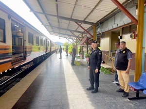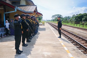 สำหรับการรักษาปลอดภัยเส้นทางรถไฟในพื้นที่รับผิดชอบของหน่วยเฉพาะกิจกรมทหารพรานที่ 45 ในพื้นที่อำเภอระแงะ เส้นทางประมาณ 24 กิโลเมตร ผ่านพื้นที่ 5 ตำบล 16 หมู่บ้าน 3 สถานี ได้แก่ สถานีรถไฟมะรือโบตก ตันหยงมัส และป่าไผ่ และมีที่หยุดรถ 1 แห่ง คือที่หยุดรถบ้านกาแด๊ะ ตำบลเฉลิม ในการแบ่งพื้นที่รับผิดชอบให้กับกองร้อยทหารพราน กำลังอาสาสมัครประจำพื้นที่ ในการช่วยกันดูแลรักษาความปลอดภัยเส้นทางรถไฟ พร้อมขอความร่วมมือประชาชนช่วยสังเกต สอดส่องดูแลพื้นที่ หากพบเห็นสิ่งผิดปกติสามารถแจ้งเจ้าหน้าที่ในพื้นที่โดยตรงรวมถึง กำนัน ผู้ใหญ่บ้าน หรือโทร. ศปก.อำเภอระแงะ 073-671344 หรือสายด่วน กอ.รมน.ภาค 4 สน. 1341