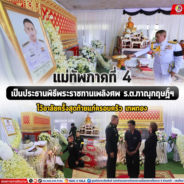 เมื่อ 14 ตุลาคม 2567 เวลา 13.30 น. ที่ วัดดอนศาลา ตำบลมะกอกเหนือ อำเภอควนขนุน จังหวัดพัทลุง พลโท ไพศาล หนูสังข์ แม่ทัพภาคที่ 4 เป็นประธานพิธีพระราชทานเพลิงศพเป็นกรณีพิเศษ แก่ ร้อยตรี ภาณุกฤษฏิ์ เทพทอง เป็นนักเรียนเตรียมทหารรุ่นที่ 60 นักเรียนนายร้อยพระจุลจอมเกล้า รุ่นที่ 71 สังกัด กองพันทหารราบที่ 2 กรมทหารราบที่ 153 ที่ได้เสียชีวิตจากโรคประจำตัวเมื่อวันที่ 1 ตุลาคม 2567 จากการรักษาตัวด้วยอาการวูบหมดสติ เมื่อวันที่ 12 กันยายน 2567 หน่วยได้ทำการส่งต่อรักษาพยาบาลยังโรงพยาบาลปัตตานี และ โรงพยาบาลสงขลานครินทร์ตามลำดับ