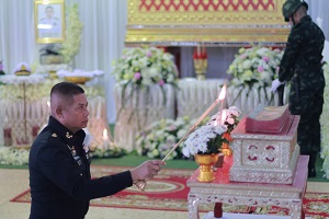 ครอบครัว ได้กำหนดจัด พิธีบำเพ็ญกุศลศพ ณ วัดดอนศาลา อำเภอควนขนุน จังหวัดพัทลุง ซึ่งเป็นภูมิลำเนาของผู้เสียชีวิต โดยเมื่อวันที่ 13 ตุลาคม ที่ผ่านมา พลโท ไพศาล หนูสังข์ แม่ทัพภาคที่ 4 และผู้บังคับบัญชากำลังพลเพื่อนทหารร่วมสวดพระอภิธรรมศพคืนสุดท้ายส่งดวงวิญญาณผู้วายชนม์สู่สุคติ