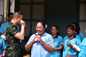 จากนั้นได้เดินทางต่อไปยังบ้านตอหลัง อำเภอเจาะไอร้อง จังหวัดนราธิวาส เยี่ยมชมการดูแลต้นไม้ทรงปลูก ของสมเด็จพระเทพรัตนราชสุดาฯ สยามบรมราชกุมารี (พระนามในขณะนั้น) “ต้นตะเคียนชันตาแมว ทรงปลูกเมื่อ 14 มกราคม 2554 ครั้งเมื่อเสด็จพระราชดำเนินปฏิบัติพระราชกรณียกิจเปิดโครงการฟาร์มตัวอย่างฯ บ้านตอหลัง และ พปปะเยี่ยมเยียนกลุ่มศิลปาชีพปักผ้าบ้านโคก สอบถามปัญหา ข้อขัดข้อง แนะนำการโปรโมทสินค้าในรูปแบบประชาสัมพันธ์ พร้อมทั้ง มอบแว่นตาตามโครงการ “แว่นตาเฉลิมพระเกียรติ สมเด็จพระนางเจ้าสิริกิติ์ พระบรมราชินีนาถ พระบรมราชชนนีพันปีหลวง ให้กับ กลุ่มศิลปาชีพปักผ้าบ้านโคก นอกจากนี้ ยังได้พบปะสมาชิกหมู่บ้านเศรษฐกิจพอเพียงและฟาร์มตัวอย่างบ้านเจาะเกาะ อำเภอ เจาะไอร้อง จังหวัดปัตตานี มอบนโยบายการบริหารจัดการภายในหมูบ้านเศษฐพอเพียง ส่งเสริมการพัฒนา ต่อยอด การสร้างอาชีพ เพิ่มรายได้แก่ตนเอง และครอบครัว ภายใต้การพึ่งพาตนเอง เพื่อให้หมู่เศษฐกิจพอเพียงดำรงอยู่ต่อไป รวมทั้งพบปะ สมาชิกอาสารักษาหมู่บ้าน (อรบ.) และ สมาชิกโครงการราษฎรอาสารักษาหมู่บ้าน (อรบ.) กองพันระแงะ ณ วัดป่าไผ่ อำเภอเจาะไอร้อง จังหวัดนราธิวาส พร้อมติดตามการปฏิบัติงาน สอบถามปัญหา ข้อขัดข้อง ข้อเสนอแนะ พร้อมให้คำแนะนำและให้กำลังใจ ในการปฏิบัติงานแก่สมาชิกภายในกลุ่ม