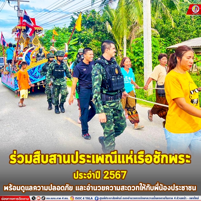 นอกจากนี้ เจ้าหน้าที่ทหารยังจัดกำลังพลมารักษาความปลอดภัยตลอดเส้นทางที่เรือพระผ่าน เพื่อรักษาความปลอดภัยและและอำนวยความสะดวกด้านการจราจรให้กับพี่น้องประชาชนที่เข้ามาร่วมกิจกรรม
