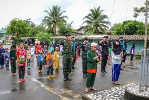 สำหรับกิจกรรมในครั้งนี้ หน่วยเฉพาะกิจกรมทหารพรานที่ 42 ได้ดำเนินการ พบปะคณะครูนักเรียน พร้อมมอบธงชาติผืนใหม่ จัดเลี้ยงขนมและเครื่องดื่ม บริการตัดผมฟรีให้กับนักเรียน ตามโครงการเกศาสานใจ ร่วมกิจกรรมสันทนาการเพื่อแบ่งปันความสุข สร้างรอยยิ้มให้กับคณะครู นักเรียนที่ร่วมกิจกรรม และเป็นการสร้างความสัมพันธ์อันดีระหว่างเจ้าหน้าที่ทหารกับคณะครูนักเรียน และประชาชนในพื้นที่