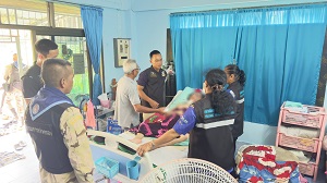 เมื่อวันที่ 26 ตุลาคม 2567 ชุดสันติสุขที่ 503 หน่วยเฉพาะกิจสันติสุข ร่วมกับ อาสาสมัครชุดคุ้มครองตำบลนาหมอศรี และนายสมบัติ พ่อนุ้ย ผู้ช่วยปกครองบ้านนาหมอศรี, นายจิรพันธ์ ทองปลอด ผู้ช่วยผู้ใหญ่บ้านฝ่ายรักษาความสงบ (ผรส.) ,เจ้าหน้าที่อาสาสมัครสาธารณสุขประจำหมู่บ้าน (อสม.) ลงพื้นที่ไปยังบ้านนาหมอศรี หมู่ที่ 1 ตำบลนาหมอศรี อำเภอนาทวี จังหวัดสงขลา เพื่อมอบเครื่องอุปโภคให้กับผู้ป่วยติดเตียงและผู้สูงอายุ จำนวน 2 ราย คือ 1. นางติน๊ะ สุวรรณพุทธรัก อายุ 59 ปี 2. นายเอี้ยน วรรณติ้ง อายุ 83 ปี และได้พูดคุยให้กำลังใจ พร้อมทั้งมอบผ้าอ้อมผู้ใหญ่ให้กับผู้ป่วยทั้ง 2 ราย ที่ไม่สามารถช่วยเหลือตัวเองได้ ซึ่งการลงพื้นที่ในครั้งนี้เป็นการส่งเสริมด้านการพัฒนาคุณภาพชีวิตให้กับประชาชนในพื้นที่ ให้มีคุณภาพชีวิตที่ดีขึ้น ตลอดจนยังสร้างขวัญกำลังใจที่ดีให้กับผู้ป่วยติดเตียง และครอบครัวต่อไป