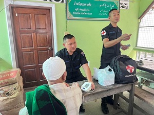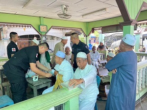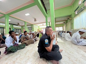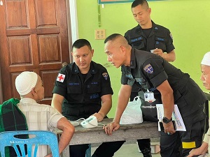 วันที่ 1 พฤศจิกายน 2567 เวลา 13.00 น. ณ มัสยิดดารุลตะเล็ม บ้านบือแนกาเซ็ง หมู่ที่ 2 ตำบลลุโบะบายะ อำเภอยี่งอ จังหวัดนราธิวาส หน่วยเฉพาะกิจนาวิกโยธินกองทัพเรือ / หน่วยเฉพาะกิจนาวิกโยธินภาคใต้ โดย หน่วยเฉพาะกิจทหารพรานนาวิกโยธินกองทัพเรือ จัดกำลังพล ร่วมกับเจ้าหน้าที่พยาบาล ลงพื้นที่เข้าพบปะ เยี่ยมเยือน พัฒนาสัมพันธ์ กับประชาชนในพื้นที่ เพื่อเสริมสร้างความสัมพันธ์อันดีระหว่างกัน พร้อมทั้งให้คำแนะนำเกี่ยวกับฮูกุมปากัต หรือธรรมนูญหมู่บ้าน 9 ดี เพื่อสร้างความเข้าใจในการปฏิบัติงานของเจ้าหน้าที่ สร้างการรับรู้สู่ประชาชนอย่างแท้จริง รวมถึงผู้นำท้องที่ผู้นำท้องถิ่นเข้าใจถึงวิธีการกระบวนการขั้นตอนในการนำธรรมนูญหมู่บ้าน 9 ดี หรือ (ฮูกุมปากัต) เข้าไปปรับใช้ในการแก้ไขปัญหาในหมู่บ้าน ชุมชนของตนเองให้เกิดการพัฒนาที่ตรงจุดตรงตามความต้องการของประชาชน ส่งผลให้ชุมชนหมู่บ้านเกิดการพัฒนาอย่างแท้จริง
