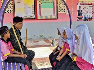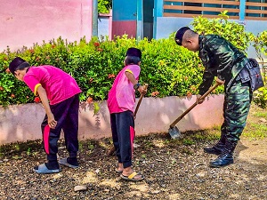 โดยการร่วมด้วยช่วยกันพัฒนา ตัดหญ้า เก็บกวาดขยะรอบๆบริเวณโรงเรียนซึ่งเป็นสถานศึกษาของบุตรหลานในพื้นที่ให้สวยงาม มีความเป็นระเบียบ เรียบร้อย สะอาด และน่ามอง เพื่อกระตุ้นให้นักเรียนเกิดความตื่นตัวในการเรียน มากยิ่งขึ้น นักเรียนและผู้ปกครองมีความรักและศรัทธาในโรงเรียนใกล้บ้าน และไว้วางใจ การเรียน การสอนต่อไป นอกจากนี้ยังเป็นการสร้างภาพลักษณ์ที่ดีให้กับเจ้าหน้าที่ทางภาครัฐ ภายใต้สังคมพหุวัฒนธรรมการอยู่ร่วมกันอย่างสันติสุขภายในชุมชน