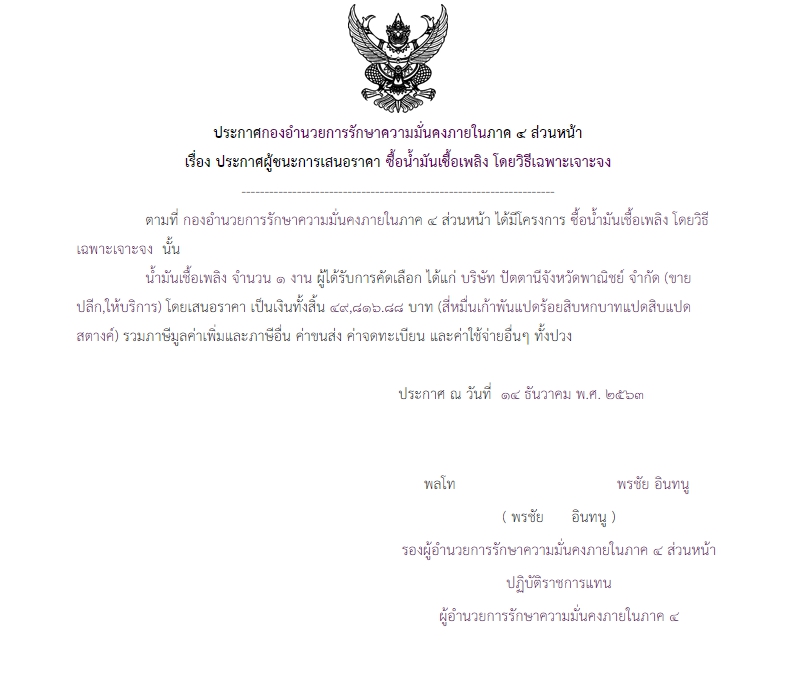 ประกาศผู้ชนะการเสนอราคา ซื้อน้ำมันเชื้อเพลิง โดยวิธีเฉพาะเจาะจง (49,816.88)