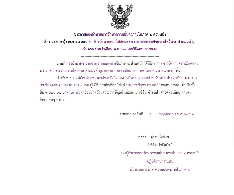 จัดซื้อ จัดจ้างประกาศผู้ชนะการเสนอราคา ประกาศผู้ชนะการเสนอราคา จ้างจัดพานดอกไม้สดและพวงมาลัยกรจัดกิจกรรมไหว้พระ สวดมนต์ ทุก วันพระ ประจำเดือน พ.ย. ๖๗ โดยวิธีเฉพาะเจาะจง November 11, 2024 240 Share Facebook Twitter Google+ Telegram LINE