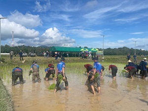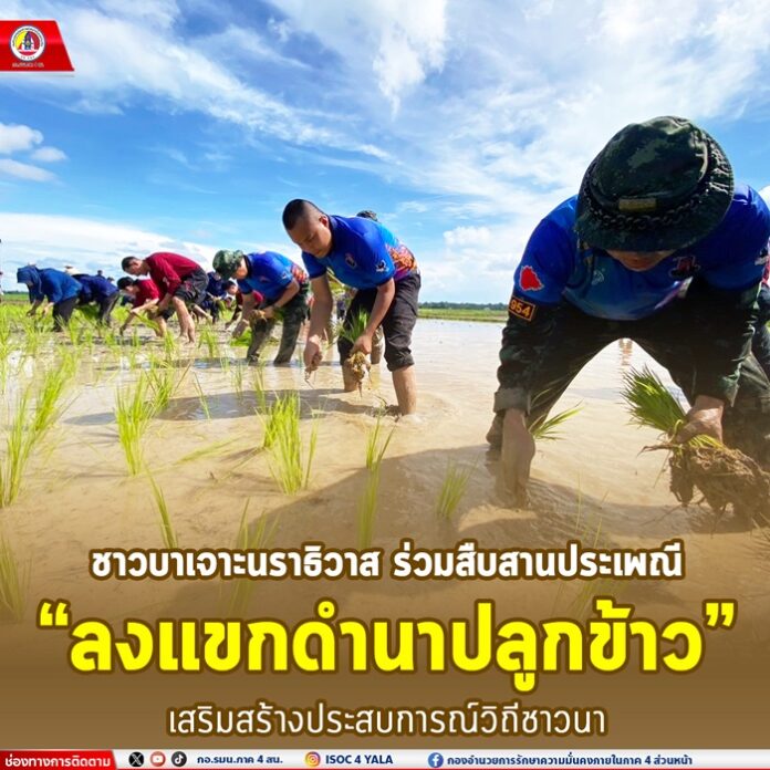 หน่วยเฉพาะกิจสันติสุข โดย ชุดสันติสุขที่ 405 ชุดทักษิณสัมพันธ์ที่ 441 ส่วนราชการในพื้นที่ ผู้นำท้องที่ ผู้นำท้องถิ่น ผู้นำศาสนา ทหาร ตำรวจ เด็ก เยาวชน และประชาชน ร่วมกิจกรรมดำนาปลูกข้าว สร้างความมั่นคงทางอาหาร ตามปรัชญาเศรษฐกิจพอเพียง เพื่อเป็นการถ่ายทอดความรู้และส่งเสริมการผลิตข้าวของเกษตรกรในพื้นที่ให้มีคุณภาพ โดยมี นายประภาส หมีดเส็น นายอำเภอบาเจาะ เป็นประธานในพิธี ณ ที่ทำการแปลงใหญ่ข้าว หมู่ที่ 7 บ้านดูกูสุเหร่า ตำบลบาเจาะ อำเภอบาเจาะ จังหวัดนราธิวาส