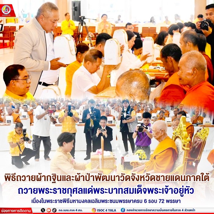 วันนี้ (13 พฤศจิกายน 2567) เวลา 10.30 น. ณ วัดนาทวี ตำบลนาทวี อำเภอนาทวี จังหวัดสงขลา พลตรี วรเดช เดชรักษา รองแม่ทัพภาคที่ 4 / รองผู้อำนวยการรักษาความมั่นคงภายในภาคที่ 4 ส่วนหน้า และคณะฯ เข้าร่วมพิธีทอดกฐินสามัคคีวัดตกค้างจำนวน 60 วัด ในพื้นที่ 3 จังหวัดชายแดนภาคใต้และ 4 อำเภอของจังหวัดสงขลา ประจำปี 2567 เพื่อเป็นการอุปัฏฐาก พระสงฆ์ที่อยู่จำพรรษาครบไตรมาส เพื่อดำรงไว้ซึ่งพระพุทธศาสนา โดยมีพระพรหมวชิรเมธาจารย์ เจ้าคณะภาค 16 เจ้าอาวาสวัดไตรธรรมาราม เป็นประธานฝ่ายสงฆ์, พร้อมด้วยประธานทอดกฐิน คุณสมปรารถนา นาวงษ์ เจ้าของเพจอีจัน, คุณวิเชียร แซ่ฉั่ว, คุณพัชธร กิตินุกูลศิลป์ และคณะ นายอำเภอนาทวี หัวหน้าส่วนราชการ ตลอดจนพุทธศาสนิกชนในพื้นที่ ร่วมพิธีอย่างเนืองแน่น สำหรับปัจจัยที่รวบรวมได้จากบริวารกฐินของผู้มีจิตศรัทธาครั้งนี้ มียอดรวมทั้งสิ้น 3,480,000 บาทถ้วน