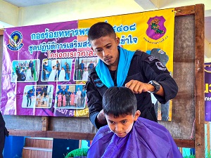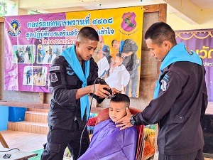 หน่วยเฉพาะกิจกรมทหารพรานที่ 44 จัดกำลังพลชุดปฏิบัติการเสริมสร้างความเข้าใจ เข้าพบปะพัฒนาสัมพันธ์ กับบุคลากรทางการศึกษา และนักเรียน ณ โรงเรียนบ้านโชติรส ตำบลตะโละไกรทอง อำเภอไม้แก่น จังหวัดปัตตานี พร้อมพูดคุยแลกเปลี่ยนข่าวสารในพื้นที่และตรวจความเรียบร้อย เพื่อทำให้พื้นที่สถานศึกษามีความปลอดภัย นอกจากนี้ ยังได้นำช่างตัดผมของหน่วย ออกให้บริการตัดผมเคลื่อนที่ให้กับเด็กนักเรียน “ตามโครงการ “เกศาสานใจ เพื่อนักเรียน และเยาวชนในพื้นที่” เพื่อให้เด็กนักเรียนมีทรงผมสั้น สะอาดเรียบร้อย และยังเป็นการช่วยแบ่งเบาภาระ ลดค่าใช้จ่ายในครัวเรือนของนักเรียนและผู้ปกครอง และเป็นการส่งเสริมการมีส่วนร่วมในชุมชน ทำให้เกิดความประทับใจ สร้างความสุข สร้างรอยยิ้ม ให้กับนักเรียน