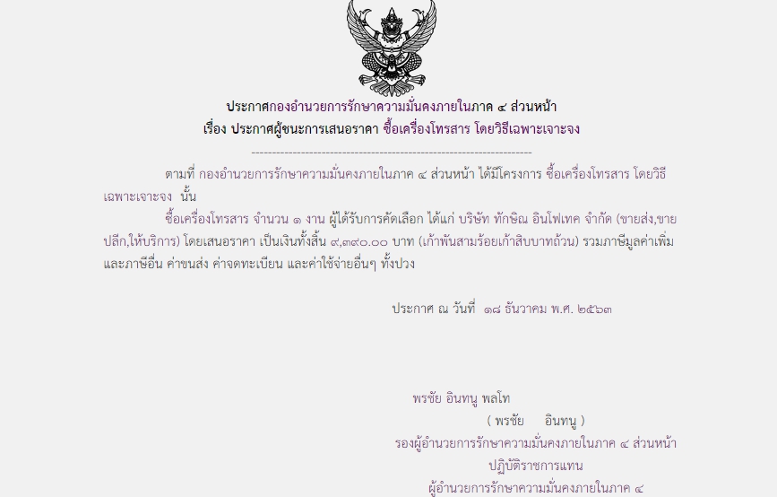 ประกาศผู้ชนะการเสนอราคา ซื้อเครื่องโทรสาร โดยวิธีเฉพาะเจาะจง ( ๙,๓๙๐.๐๐ บาท )