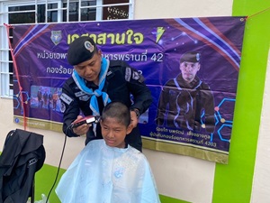 นอกจากนี้ หน่วยเฉพาะกิจกรมทหารพรานที่ 42 ยังได้นำช่างตัดผมของหน่วย ออกให้บริการตัดผมเคลื่อนที่ให้กับเด็กนักเรียน “ตามโครงการเกศาสานใจ สู่สันติสุข” โดยในกิจกรรมดังกล่าว เพื่อเป็นการลดค่าใช้จ่ายให้กับผู้ปกครอง และเป็นการสร้างความเชื่อมั่นให้กับพี่น้องประชาชนในพื้นที่ ภายใต้ “สังคมการอยู่ร่วมกันของพี่น้องประชาชน และเจ้าหน้าที่ทางภาครัฐ อย่างสันติสุข” ตลอดจนยังเป็นการพัฒนาเสริมสร้างความสัมพันธ์อันดี สร้างภาพลักษณ์ที่ดีของหน่วยอีกด้วย