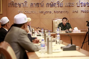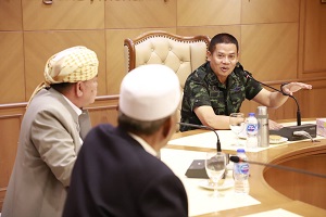 โอกาสนี้ แม่ทัพภาคที่ 4 / ผู้อำนวยการรักษาความมั่นคงภายในภาค 4 ได้ร่วมหารือพูดคุยกับคณะสมาพันธ์คณะกรรมการอิสลามประจำจังหวัด 15 จังหวัดภาคใต้ ถึงแนวทางการสร้างความเข้าใจไปยังผู้เห็นต่าง และพี่น้องประชาชนที่ยังมีความเข้าใจในประเด็นต่าง ๆ ที่บิดเบือนไป รวมถึงแนวทางการแก้ไขปัญหายาเสพติด ทั้งในการป้องกันปราบปราม การบำบัด ฟื้นฟู และรักษา โดยเน้นการมีส่วนร่วมจากทุกภาคส่วน ทั้งภาครัฐ ภาคประชาชน สถาบันครอบครัว และผู้นำทางศาสนา เนื่องจากทราบปัญหาในพื้นที่เป็นอย่างดี ตลอดจนแนวทางการสร้างความเข้าใจกับทุกฝ่าย ภายใต้การเคารพความแตกต่าง ไม่แบ่งแยกเชื้อชาติ ศาสนา ทุกคนจะได้ร่วมกันเป็นส่วนหนึ่งในการแสวงหาทางออกร่วมกัน โดยเจ้าหน้าที่ทุกคนพร้อมปฏิบัติงานด้านความมั่นคงดูแลความปลอดภัย คู่ขนานกับงานด้านการพัฒนาคุณภาพชีวิตของประชาชนนำความสันติสุขอย่างยั่งยืนกลับคืนสู่ชายแดนใต้