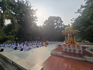จากนั้นคณะผู้ปฏิบัติธรรม ฯ ได้เดินทางไปเยี่ยมชม วัดเวฬุวัน หรือ วัดเวฬุวนาราม ซึ่งเป็นวัดแห่งแรกของโลก ที่พระเจ้าพิมพิสาร สร้างถวายพระพุทธองค์และพระสงฆ์ 1,250 รูป ล้วนเป็นเอหิภิกขุมาประชุมพร้อมเพรียงกันโดยมิได้นัดหมาย เรียกว่า “มาฆบูชา”