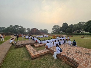 ต่อมาในช่วงบ่ายคณะฯ ได้เดินทางไปยังเมืองนาลันทา เพื่อเข้ากราบนมัสการหลวงพ่อพุทธองค์ดำ ซึ่งเป็นพระพุทธรูปเพียงหนึ่งเดียวที่รอดพ้นจากการถูกทำลาย จึงมีความศักดิ์สิทธิ์และเป็นที่นับถือของชาวพุทธ – ฮินดู นอกจากนี้ยังได้เยี่ยมชม มหาวิทยาลัยนาลันทา ซึ่งเป็นมหาวิทยาลัยสงฆ์ แห่งแรกของโลก ที่เคยรุ่งเรืองเป็นอย่างมากในสมัยอดีต มีนักเรียนนักศึกษาทั่วทุกมุมของโลกต่างเดินทางมาเพื่อศึกษาเล่าเรียน ถือเป็นมหาวิทยาลัยพุทธศาสนาที่มีชื่อเสียงโด่งดังมาก