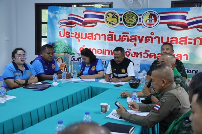 เมื่อวันที่ 22 พฤศจิกายน 2567 เวลา 14.00 น. ที่ห้องประชุม เขตห้ามล่าสัตว์ป่าเขาปะช้าง – แหลมขาม หมู่ที 1 ตำบลสะกอม อำเภอเทพา จังหวัดสงขลา พันเอก พีระยุทธ ชุมโคตร หัวหน้าฝ่ายกิจการพลเรือน หน่วยเฉพาะกิจสงขลา พร้อมด้วย พันเอก ชัยวุฒิ พรหมทอง ผู้บังคับหน่วยเฉพาะกิจสงขลา 40 ร่วมประชุมสภาสันติสุขตำบละกอม ครั้งที่ 11/2567 หารือถึงสถานการณ์ในพื้นที่ที่เกิดขึ้น เมื่อวันที่ 20 พฤศจิกายน 2567 ที่ผ่านมา โดยมี นายอำเภอเทพา, หัวหน้าส่วนราชการ, กำนัน, ผู้ใหญ่บ้าน, สมาชิกสภาสันติสุขตำบลสะกอม เข้าร่วมประชุม