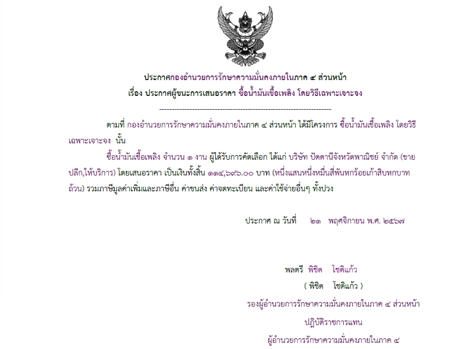 จัดซื้อ จัดจ้างประกาศผู้ชนะการเสนอราคา ประกาศผู้ชนะการเสนอราคา ซื้อน้ำมันเชื้อเพลิง โดยวิธีเฉพาะเจาะจง November 24, 2024 248 Share Facebook Twitter Google+ Telegram LINE