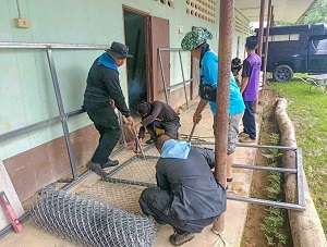 หน่วยเฉพาะกิจกรมทหารพรานที่ 33 จัดกำลังพล ชุดปฏิบัติการกิจการพลเรือน ร่วมกับ ผู้นำหมู่บ้าน ผู้นำชุมชน และบุคลากรครู เข้าดำเนินการต่อเติม สร้างประตูด้านหลังโรงเรียนที่ชำรุดให้กลับมาอยู่ในสภาพที่พร้อมใช้งาน ณ โรงเรียนบ้านตะบิงติงงีสามัคคี หมู่ที่ 13 บ้านปาลอบาต๊ะ ตำบลตลิ่งชัน อำเภอบันนังสตา จังหวัดยะลา เพื่อเป็นการยกระดับและพัฒนาคุณภาพชีวิต ของคณะครูและนักเรียน ในโรงเรียนให้ดีขึ้น และเป็นการสร้างความสัมพันธ์อันดีระหว่างเจ้าหน้าที่กับประชาชนในพื้นที่