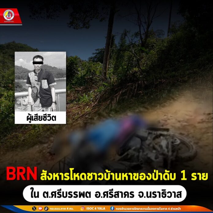 เมื่อวันที่ 24 พฤศจิกายน 2567 เวลา 13.20 น. คนร้ายไม่ทราบจำนวน ใช้อาวุธปืนไม่ทราบชนิดและขนาด ยิง นายนิเวช บรรดิษฐ อายุ 52 ปี อยู่บ้านเลขที่ 43/1 หมู่ที่ 1 ตำบลศรีบรรพต อำเภอศรีสาคร จังหวัดนราธิวาส ขณะไปหาของป่าบริเวณเขาเมาะแต หลังหาของป่าเสร็จกำลังเดินทางกลับโดยรถจักรยานยนต์ เมื่อขับรถมาถึงบนถนนลูกรังทางขึ้นเทือกเขาเมาะแต ท้องที่บ้านลูโบ๊ะยือริง หมู่ที่ 5 ตำบลศรีบรรพต อำเภอศรีสาคร จังหวัดนราธิวาส คนร้ายใช้อาวุธปืนยิงนายนิเวชฯ กระสุนถูกบริเวณหน้าอกและใบหน้า เสียชีวิตในที่เกิดเหตุ หลังก่อเหตุคนร้ายได้นำปืนลูกซองและโทรศัพท์มือถือของนายนิเวชฯ หลบหนีไปด้วย
