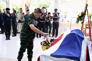 ในการนี้ แม่ทัพภาคที่ 4 / ผู้อำนวยการรักษาความมั่นคงภายในภาค 4 ได้เป็นผู้แทนวางหรีดเคารพศพของ นางสาวแพทองธาร ชินวัตร นายกรัฐมนตรี / ผู้อำนวยการรักษาความมั่นคงภายในราชอาณาจักร, นายภูมิธรรม เวชยชัย รัฐมนตรีว่าการกระทรวงกลาโหม, พลเอกพนา แคล้วปลอดทุกข์ ผู้บัญชาการทหารบก / รองผู้อำนวยการรักษาความมั่นคงภายในราชอาณาจักร และวางหรีดเคารพศพ ในนามแม่ทัพภาคที่ 4 / ผู้อำนวยการรักษาความมั่นคงภายในภาค 4 พร้อมกันนี้ พันเอก พงศกร แสงกุล ผู้บังคับหน่วยเฉพาะกิจกรมทหารพรานที่ 41 ได้เป็นผู้แทนครอบครัวของอาสาสมัครทหารพราน เปลี่ยน ศิริสุข รับมอบเข็มบางระจันเพื่อประกาศเกียรติคุณยกย่องเชิดชูเกียรติแก่วีรชนผู้กล้าในการเสียสละเพื่อความสงบของพื้นที่จังหวัดชายแดนภาคใต้ ตลอดจนรับมอบเงินช่วยเหลือเยียวยาให้แก่ครอบครัวผู้เสียชีวิต