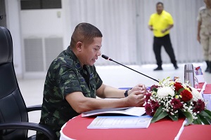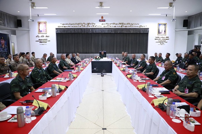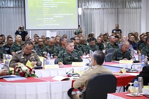 โอกาสนี้ พลโท ไพศาล หนูสังข์ แม่ทัพภาคที่ 4 / ผู้อำนวยการรักษาความมั่นคงภายในภาค 4 กล่าวขอบคุณทุกภาคส่วนที่บูรณาการร่วมมือร่วมใจปฏิบัติหน้าที่ได้อย่างประสานสอดคล้อง ตามกรอบแผนงานของรัฐบาล ตรงตามเป้าหมายเดียวกันคือ “ทำให้เกิดสันติสุขในพื้นที่จังหวัดชายแดนภาคใต้” โดยห้วงที่ผ่านมาได้ลงพื้นที่เยี่ยมพบปะผู้นำศาสนา,หัวหน้าส่วนราชการ,ผู้นำท้องที่ ผู้นำท้องถิ่นในจังหวัดชายแดนภาคใต้ และ 4 อำเภอจังหวัดสงขลา เพื่อแลกเปลี่ยน รับฟัง ข้อคิดเห็น ข้อเสนอแนะ นำข้อมูลปรับใช้แก้ปัญหาพื้นที่ให้ตรงความต้องการของพี่น้องประชาชน ภาพรวมกลุ่มผู้ก่อเหตุรุนแรงยังคงก่อเหตุ และพยายามสร้างสถานการณ์ต่อเจ้าหน้าที่รัฐต่อเนื่อง หวังทำลายความน่าเชื่อถือต่อการปฏิบัติของเจ้าหน้าที่ กำชับทุกภาคส่วนเพิ่มความเข้มการปฏิบัติตามนโยบายสำคัญ เน้น สานต่อการน้อมนำศาสตร์พระราชา “เข้าใจ เข้าถึง พัฒนา” นำทางแก้ไขปัญหา ควบคู่พัฒนาพื้นที่โดยใช้สภาสันติสุขตำบล และหลักฮูกุมปากัต (ธรรมนูญหมู่บ้าน 9 ดี) ให้ภาคประชาสังคมมีส่วนร่วม บูรณาการให้เป็นรูปธรรม กำชับหน่วยเฉพาะกิจในพื้นที่ต้องประสานกำลังทั้ง 3 ฝ่าย ทหาร ตำรวจ พลเรือน บูรณาการกำลังเพิ่มมาตรการควบคุมพื้นที่ต้องรัดกุม ไม่ประมาท ให้คิดเชิงวิเคราะห์ ประเมินแก้ไข ให้ดียิ่งขึ้นและมีประสิทธิภาพครอบคลุมทุกมิติ เพื่อพื้นที่ปลอดเหตุ ปลอดภัย ประชาชนอยู่ร่วมกันอย่างมีความสุข ปราศจากความหวาดระแวงซึ่งกันและกัน “สร้างความเข้าใจ ร่วมใจแก้ปัญหา นำพาสันติสุข” และขอให้ทุกหน่วยเตรียมการรับสถานการณ์อุทกภัย วาตภัย และดินโคลนถล่มตามนโยบาย ผู้บัญชาการทหารบก ที่มอบหมายให้หน่วยทหารทั่วประเทศเตรียมจัดกำลังพลและยุทโธปกรณ์เข้าสนับสนุนหน่วยทหารในพื้นที่ประสบอุทกภัย เมื่อได้รับการร้องขอ โดยบูรณาการการช่วยเหลือของกำลังพลจิตอาสา ผ่านกลไกศูนย์อำนวยการใหญ่จิตอาสาสาพระราชทานในทุกระดับทั้งในระดับภาคและระดับจังหวัด เข้าสนับสนุนการดำเนินการของส่วนราชการในพื้นที่ เพื่อให้การช่วยเหลือประชาชนเป็นไปอย่างมีประสิทธิภาพและเกิดประโยชน์สูงสุด