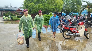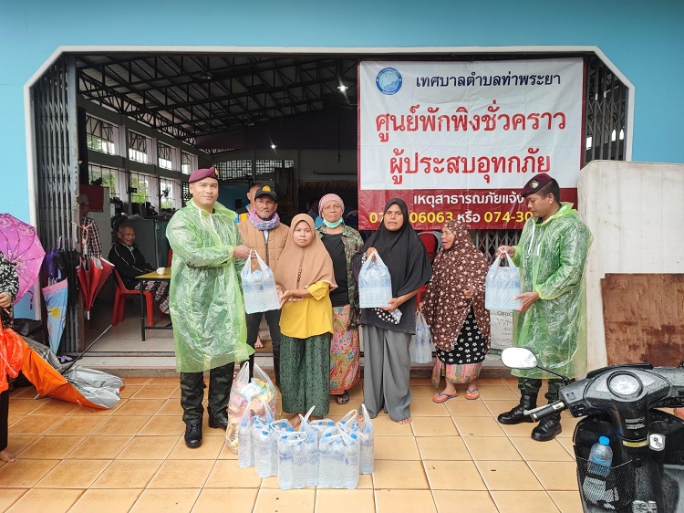 หน่วยเฉพาะกิจสันติสุข โดยชุดสันติสุขที่ 505 และชุดทักษิณสัมพันธ์ที่ 551 มุ่งมั่นในการช่วยเหลือพี่น้องประชาชนอย่างเต็มที่เต็มกำลัง โดยการลงพื้นที่มอบน้ำดื่มและอาหารให้แก่เด็กและเยาวชน รวมไปถึงพี่น้องประชาชนที่ได้รับผลกระทบ ณ ศูนย์พักพิงผู้ประสบภัยชั่วคราว ณ โรงเรียนสะบ้าย้อย หมู่ที่ 1 ตำบลสะบ้าย้อย อำเภอสะบ้าย้อย จังหวัดสงขลา
