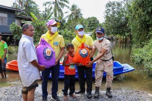 ศอ.บต. ดำเนินการแจกจ่ายถุงยังชีพพระราชทานจากมูลนิธิเพื่อนพึ่ง (ภา) ยามยาก สภากาชาดไทย ครั้งที่ 1 จำนวน 2,100 ถุง และครั้งที่ 2 จำนวน 3,000 ถุง แก่ราษฎร บัณฑิตอาสาพัฒนามาตุภูมิ และผู้นำท้องถิ่น เพื่อนำไปแจกจ่ายแก่ราษฎรในพื้นที่ 3 จชต. ที่ประสบอุทกภัยน้ำท่วมขัง ทั้งสิ้น 24 อำเภอ ประกอบด้วย จ.ยะลา 5 อำเภอ จ.ปัตตานี 9 อำเภอ และ จ.นราธิวาส 10 อำเภอ จำนวนทั้งสิ้น 5,100 ถุง