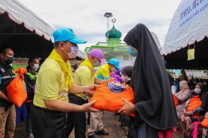 วันที่ 26 ธ.ค. 2563 ราษฎรในพื้นที่ อ.หนองจิก จ.ปัตตานี และ อ.รามัน จ.ยะลา รับถุงยังชีพพระราชทาน จากพลเรือตรี สมเกียรติ ผลประยูร เลขาธิการ ศูนย์อำนวยการบริหารจังหวัดชายแดนภาคใต้ (ศอ.บต.) เป็นผู้แทนมูลนิธิเพื่อนพึ่ง (ภา) ยามยาก สภากาชาดไทย อันเชิญถุงยังชีพพระราชทาน พระเจ้าวรวงศ์เธอ พระองค์เจ้าโสมสวลี กรมหมื่นสุทธนารีนาถ องค์นายกกิตติมศักดิ์ตลอดชีพ และสมเด็จพระเจ้า ลูกเธอ เจ้าฟ้าพัชรกิติยาภา นเรนทิราเทพยวดี กรมหลวงราชสาริณีสิริพัชร มหาวัชรราชธิดา องค์ประธานกรรมการมูลนิธิอาสาเพื่อนพึ่ง (ภาฯ) ยามยาก มอบแก่ราษฎรใน อ.หนองจิก 130 ถุง อ.รามัน 250 ถุงและพระภิกษุสงฆ์ วัดรังสิตาราม อ.รามัน จ.ยะลา จำนวน 10 ถุง