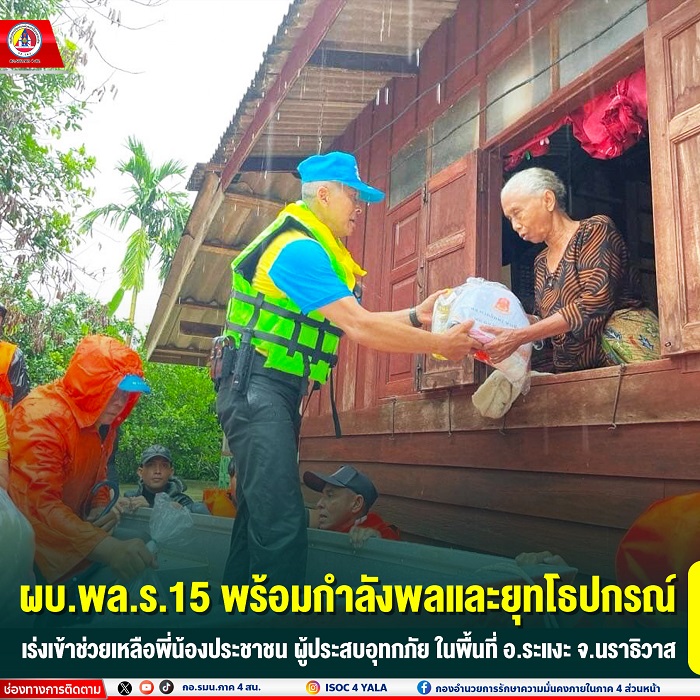 เมื่อวันที่ 29 พฤศจิกายน 2567 อำเภอระแงะ จังหวัดนราธิวาส พลตรี เฉลิมพร ขำเขียว ผู้บัญชาการกองพลทหารราบที่ 15/ผู้บังคับหน่วยเฉพาะกิจนราธิวาส นำกำลังพลและยุทโธปกรณ์ รุดลงพื้นที่ เข้าช่วยเหลือพี่น้องประชาชนผู้ประสบอุทกภัยน้ำท่วม ในพื้นที่ โดยได้ช่วยเคลื่อนย้ายสิ่งของจำเป็นขึ้นที่สูง พร้อมอพยพพี่น้องประชาชนออกจากพื้นที่น้ำท่วมสูง ไปอยู่ในพื้นที่สำหรับผู้ประสบภัย จนกว่าระดับน้ำจะลดลง พร้อมทั้ง มอบอาหาร น้ำดื่ม และของใช้จำเป็นให้กับประชาชนที่ได้รับผลกระทบ เพื่อบรรเทาความเดือดร้อนเบื้องต้นให้แก่พี่น้องประชาชน เนื่องจากหมู่บ้านดังกล่าวถือว่าอยู่ในพื้นที่ลุ่มต่ำ มีสภาวะน้ำท่วมเพิ่มสูงขึ้นอย่างรวดเร็ว จากผลพวงของคลองตันหยงมัส ที่มวลน้ำกำลังระบายลงสู่แม่น้ำบางนรา โดยพลตรี เฉลิมพร ขำเขียว พบปัญหาในการให้ความช่วยเหลือชาวบ้านที่ประสบอุทกภัย เจ้าหน้าที่มียุทโธปกรณ์ไม่เพียงพอต่อการช่วยเหลืออพยพพี่น้องประชาชน จึงได้สั่งการประสานงานหน่วยงานที่เกี่ยวข้อง เพื่อขอความสนับสนุน เครื่องมือยุทโธปกรณ์ อาทิ เรือติดเครื่องยนต์ที่มีความจำเป็นต่อการช่วยเหลือพี่น้องประชาชน