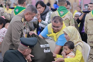 เมื่อวันที่ 4 ธันวาคม 2567 เวลา 09.40 น. ณ หอประชุมสำนักงานคณะกรรมการอิสลามประจำจังหวัดปัตตานี อำเภอหนองจิก จังหวัดปัตตานี พระบาทสมเด็จพระเจ้าอยู่หัวและสมเด็จพระนางเจ้าฯ พระบรมราชินี ทรงพระกรุณาโปรดเกล้าโปรดกระหม่อมให้ พลเอก เฉลิมชัย สิทธิสาท องคมนตรี ร่วมกับมูลนิธิราชประชานุเคราะห์ในพระบรมราชูปถัมภ์ เชิญสิ่งของพระราชทานจำนวน 1,999 ชุด และถุงพระราชทานสำหรับเด็กอายุ 0 – 2 ปี จำนวน 100 ชุด มอบแก่ราษฎรและครอบครัวเด็กที่ประสบอุทกภัยในพื้นที่จังหวัดปัตตานี พร้อมประชุมติดตามการแก้ไขสถานการณ์อุทกภัยร่วมกับส่วนราชการที่เกี่ยวข้อง เพื่อรับทราบถึงปัญหาอุทกภัยที่เกิดขึ้นในพื้นที่จังหวัดปัตตานี โดยมี พลโท ไพศาล หนูสังข์ แม่ทัพภาคที่ 4 / ผู้อำนวยการรักษาความมั่นคงภายในภาค 4 ให้การต้อนรับและร่วมคณะติดตาม