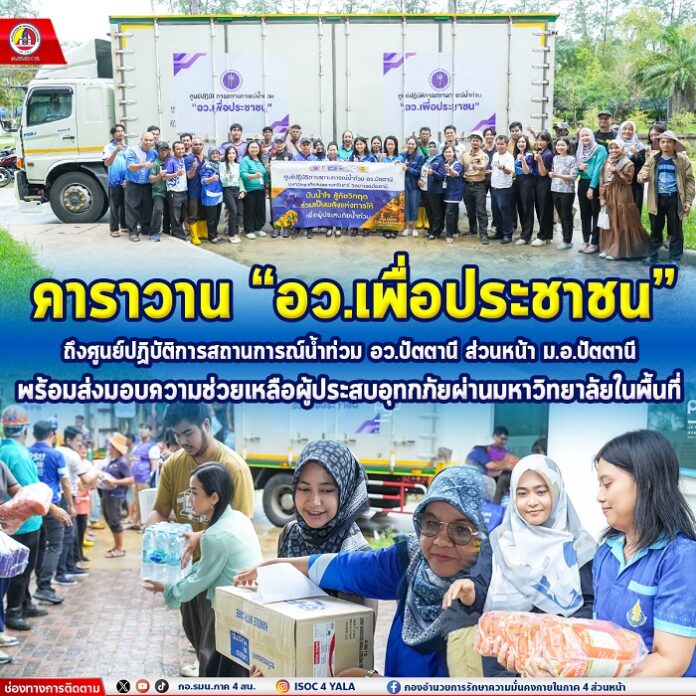 วันที่ 4 ธันวาคม 2567 เวลา 12.00 น. คาราวาน “อว.เพื่อประชาชน” นำโดยกระทรวงการอุดมศึกษา วิทยาศาสตร์ วิจัยและนวัตกรรม (อว.) เดินทางถึงศูนย์ปฏิบัติการสถานการณ์น้ำท่วม อว.ปัตตานี ส่วนหน้า ณ มหาวิทยาลัยสงขลานครินทร์ วิทยาเขตปัตตานี เพื่อส่งมอบสิ่งของช่วยเหลือแก่ประชาชนที่ได้รับผลกระทบจากวิกฤตน้ำท่วมในภาคใต้ โดยเฉพาะในจังหวัดยะลา และนราธิวาส โดยมี บุคลากร และนักศึกษา รับมอบและเตรียมสำหรับการกระจายไปยังจังหวัดยะลา และนราธิวาส
