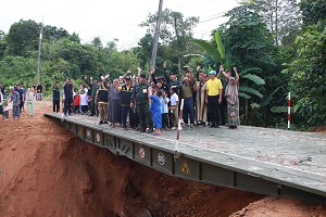 ล่าสุด (วันที่ 5 ธันวาคม 2567) เวลา 10.00 น. พลโท ไพศาล หนูสังข์ แม่ทัพภาคที่ 4 / ผู้อำนวยการรักษาความมั่นคงภายในภาค 4 มอบหมายให้ พลตรี เฉลิมพร ขำเขียว ผู้บัญชาการกองพลทหารราบที่ 15 / ผู้บังคับหน่วยเฉพาะกิจนราธิวาส และ พันโท ฐาปกรณ์ หรั่งอิน ผู้บังคับกองพันทหารช่างที่ 15 กองพลทหารราบที่ 15 ค่ายสมเด็จพระสุริโยทัย พร้อมกำลังพล ลงพื้นที่ตรวจเยี่ยมและติดตามสถานการณ์ผลกระทบอันเนื่องมาจากอุทกภัยในพื้นที่ อำเภอสุคิริน จังหวัดนราธิวาส โดยนำกำลังพลและยุทโธปกรณ์ เข้าช่วยเหลือพี่น้องประชาชน พร้อมติดตั้งสะพานแบริ่ง เพื่ออำนวยความสะดวกให้พี่น้องประชาชนในการดำเนินชีวิตประจำวัน หลังจากถนนเส้นทางหลักที่ใช้สัญจรไป-มา ในพื้นที่ของตำบลมาโมงและตำบลภูเขาทอง ถูกกระแสน้ำป่าไหลหลากและตัดขาดในช่วงอุทกภัยที่ผ่านมา ณ บ้านไอร์ปูลง ตำบลมาโมง อำเภอสุคิริน จังหวัดนราธิวาส โดยมี หน่วยเฉพาะกิจกองพันทหารราบที่ 2, ส่วนราชการ, ผู้นำท้องที่ผู้นำท้องถิ่น และพี่น้องประชาชนในพื้นที่คอยให้ความช่วยเหลือ