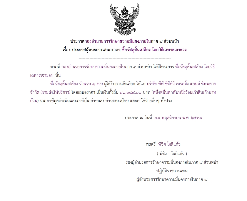 จัดซื้อ จัดจ้างประกาศผู้ชนะการเสนอราคา ประกาศผู้ชนะการเสนอราคา ชื่อวัสดุสิ้นเปลือง โดยวิธีเฉพาะเจาะจง December 7, 2024 237 Share Facebook Twitter Google+ Telegram LINE