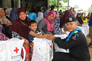 สำหรับถุงยังชีพ เป็นความร่วมแรงร่วมใจกันของทุกภาคส่วนในการบรรจุสิ่งของจำเป็นต่าง ๆ ลงในถุงยังชีพ อาทิ อาหารแห้ง ยาสามัญประจำบ้าน และสิ่งของที่จำเป็นอื่น ๆ เพื่อให้ผู้ประสบภัยได้รับความช่วยเหลืออย่างทั่วถึงและรวดเร็ว