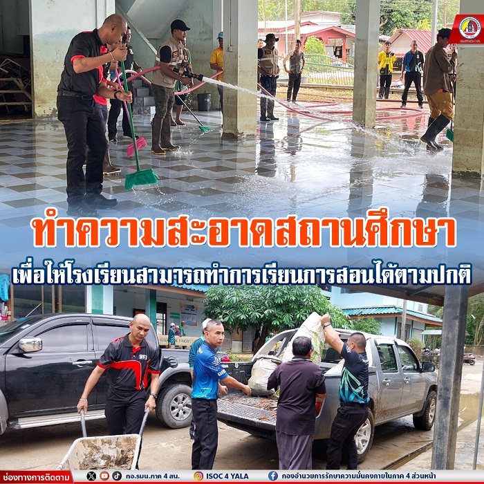 ทั้งนี้ การเข้าช่วยเหลือด้วยการร่วมกันกวาดและล้าง ทำความสะอาด เพื่อให้นักเรียนและชาวบ้านในพื้นที่กลับมาใช้สถานที่ทำกิจกรรมได้ตามปกติ ซึ่งเป็นไปตามนโยบายของ แม่ทัพภาคที่ 4 / ผู้อำนวยการรักษาความมั่นคงภายในภาค 4 ที่ต้องการให้เจ้าหน้าที่ทหารช่วยเหลือผู้ประสบภัยและร่วมฟื้นฟูสถานที่ต่าง ๆ เพื่อให้ประชาชนสามารถกลับมาใช้ชีวิตได้ตามปกติโดยเร็วที่สุด.
