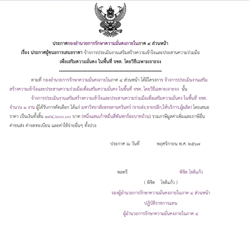 จัดซื้อ จัดจ้างประกาศผู้ชนะการเสนอราคา ประกาศผู้ชนะการเสนอราคา จ้างการประเมินงานเสริมสร้างความเข้าใจและประสานความร่วมมือ เพื่อเสริมความมั่นคง ในพื้นที่ จชต. โดยวิธีเฉพาะเจาะจง December 11, 2024 232 Share Facebook Twitter Google+ Telegram LINE