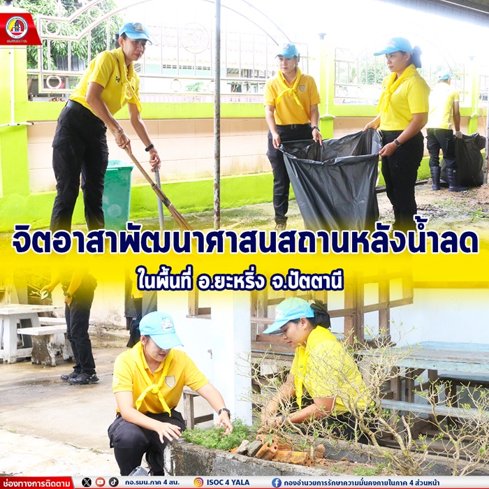 เมื่อวันที่ 11 ธันวาคม 2567 เวลา 13.30 น. ที่ ศูนย์จริยธรรมดาริยะห์ป่าหลวงดารุสสลาม (มัสยิดป่าหลวง) หมู่ที่ 3 ตำบลยามู อำเภอยะหริ่ง จังหวัดปัตตานี หน่วยเฉพาะกิจกรมทหารพรานที่ 42 จัดกำลังพลจิตอาสาพระราชทาน ร่วมกับ หัวหน้าส่วนราชการ, ผู้นำท้องที่, ผู้นำท้องถิ่น, ผู้นำศาสนา, หน่วยงานราชการที่เกี่ยวข้อง และ ประชาชนจิตอาสาพระราชทานในพื้นที่ ร่วมกิจกรรม “จิตอาสาพัฒนาศาสนสถาน” ในพื้นที่ อ.ยะหริ่ง หลังจากสถานการณ์อุทกภัย โดยร่วมกันทำความสะอาด และปรับปรุงภูมิทัศน์บริเวณโดยรอบมัสยิด เพื่อความเป็นระเบียบเรียบร้อย และเป็นการสร้างความรักความสามัคคีของหน่วยงานราชการ ที่มีต่อประชาชนในพื้นที่อีกด้วย